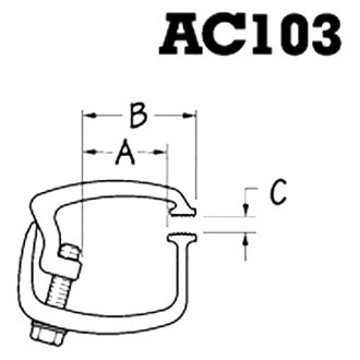 Angular Cam Mounting Clamps by API®. 50 per Case. Dimensions: Base Length (A): 1-3/4"; Bracket Length (B): 2-1/4"; Clamp Opening (C): 0 to 7/8". Type: Assembled. API products have become the products of choice because this brand delivers the highest quality and the best value. API is dedicated to serving the truck cap and accessory industry by redefining the leading edge of cap installation technology and by delivering products that give years of reliable service.